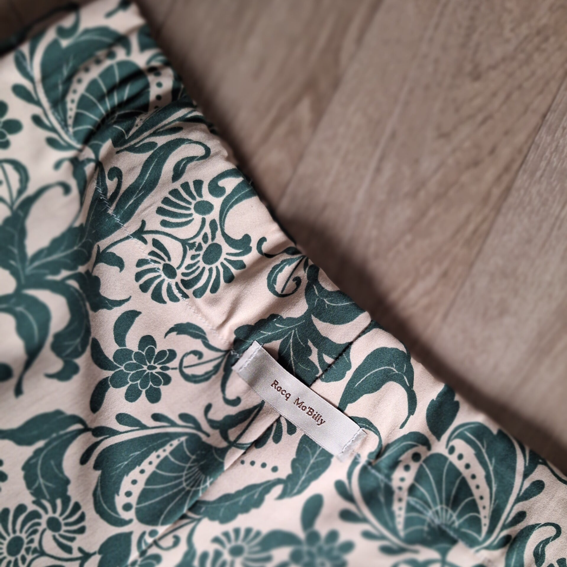 Deze print is ook verkijgbaar als gilet en het model flare is ook verkrijgbaar in linnen en velours