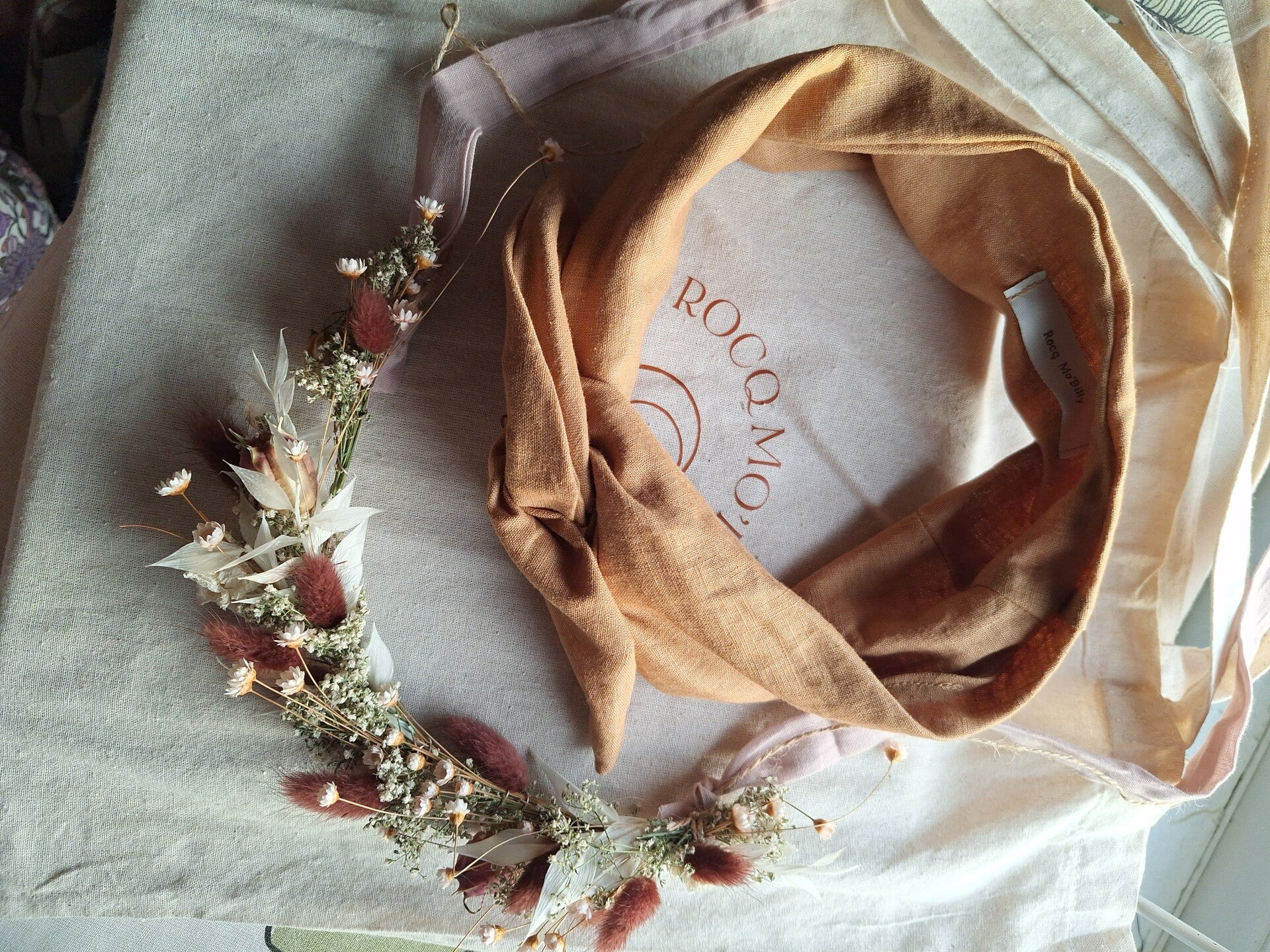 Een mooie bandeau gemaakt van 100% gewassen linnen in de kleur oker gold.