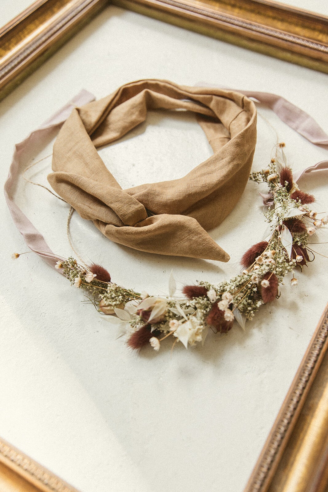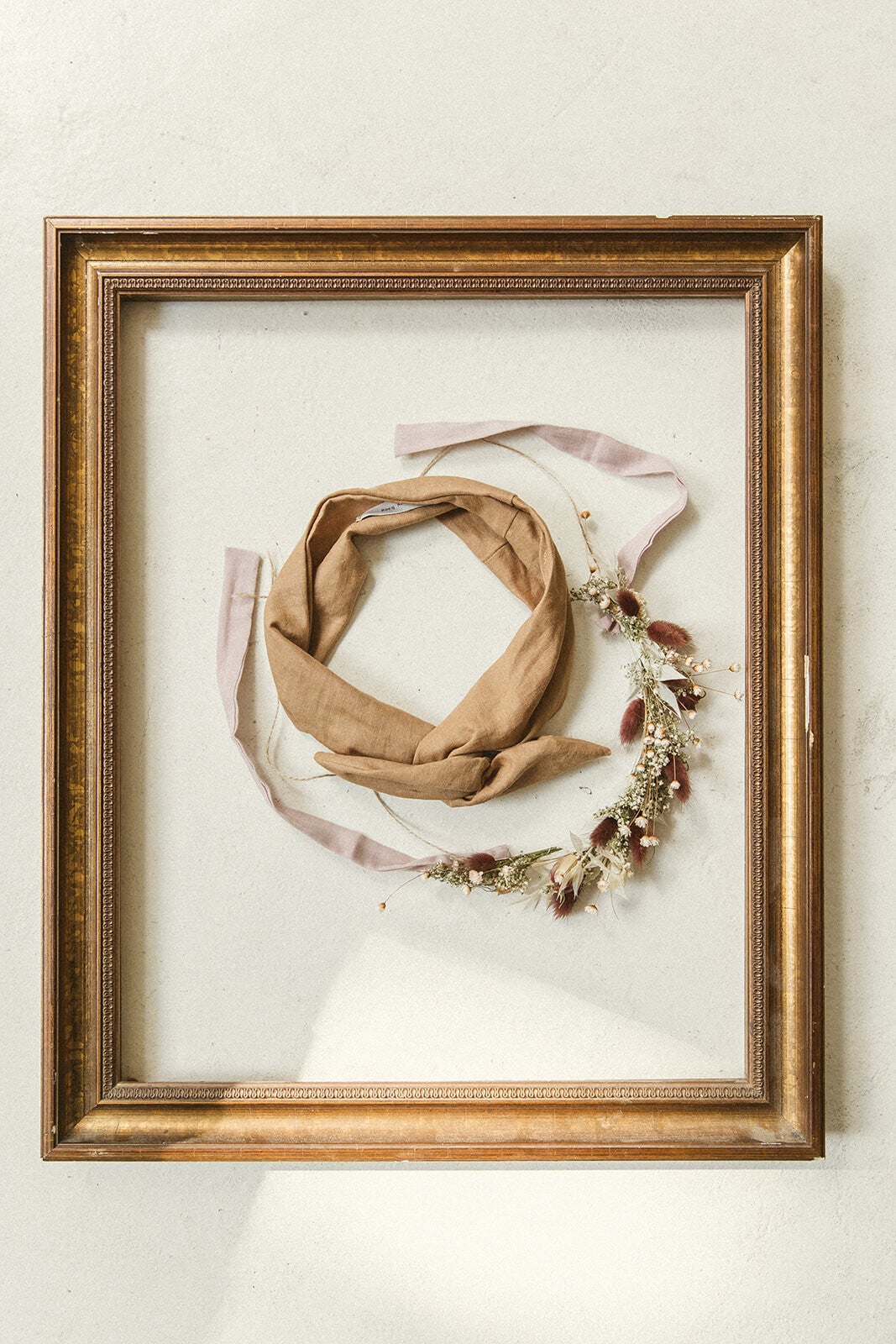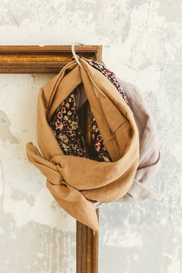 A beautiful bandeau crafted from 100% washed linen in the color oker gold.