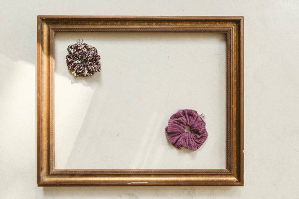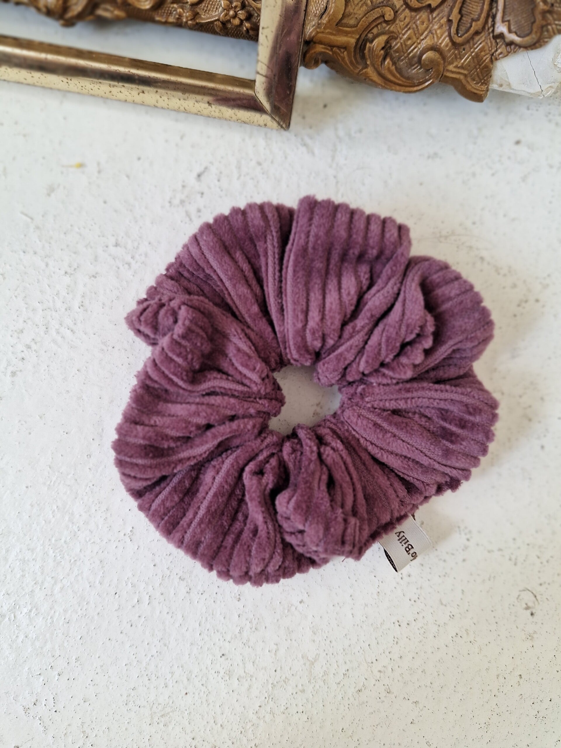 A scrunchie crafted from cotton corduroy. After creating the Happy Soul Playsuit, this lucky scrunchie in the color Dark Mauve was born."