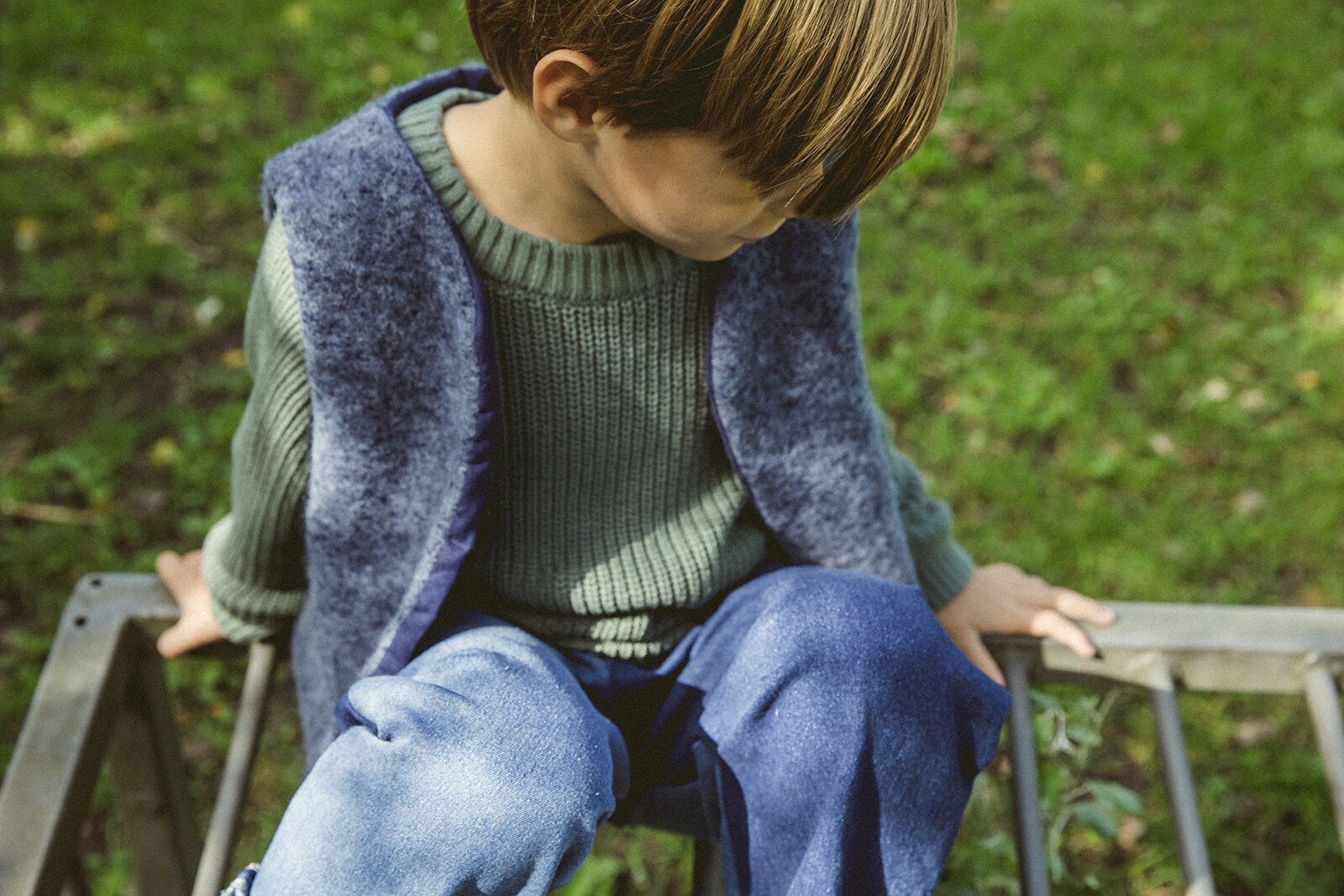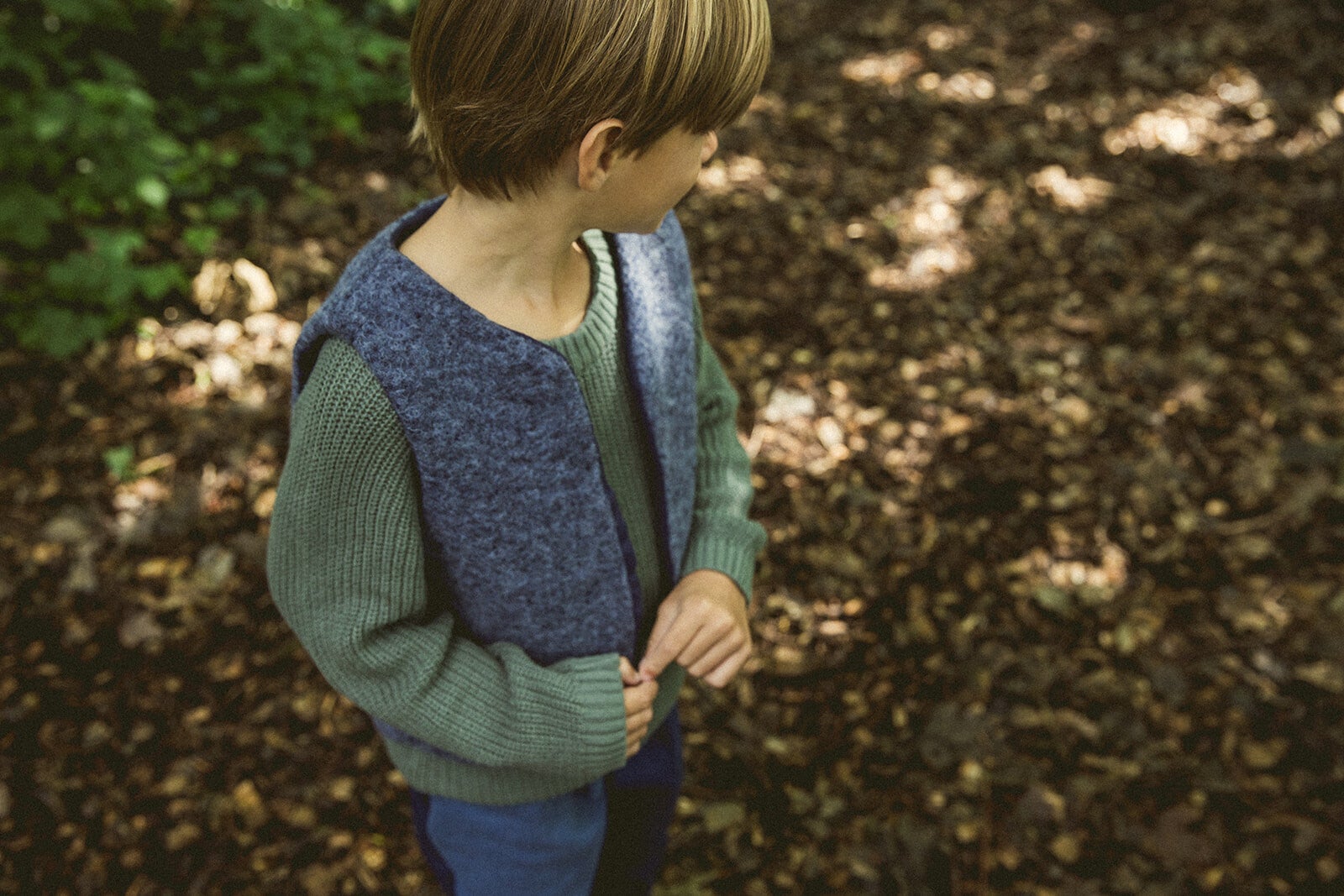 This beautiful vest is crafted from heathered wool sourced from deadstock and lined with washed dark blue linen!