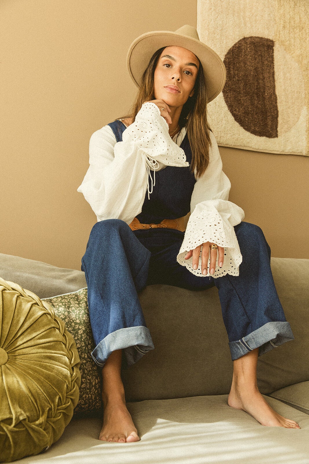 Allebei de modellen dragen hier maat 38 van de blouse voor een oversized look!