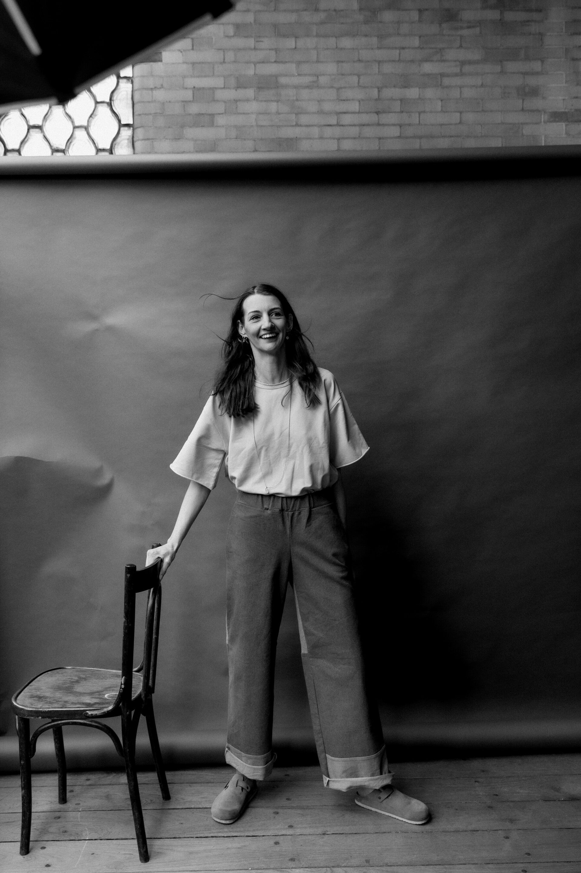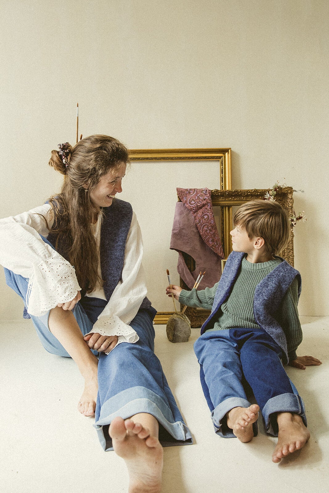 De Kenshō spijkerbroek heeft een iets verlaagd kruis, steekzakken, een elastiek band en opgerolde pijpen. Het comfort van een joggingbroek, maar de look van een jeans!