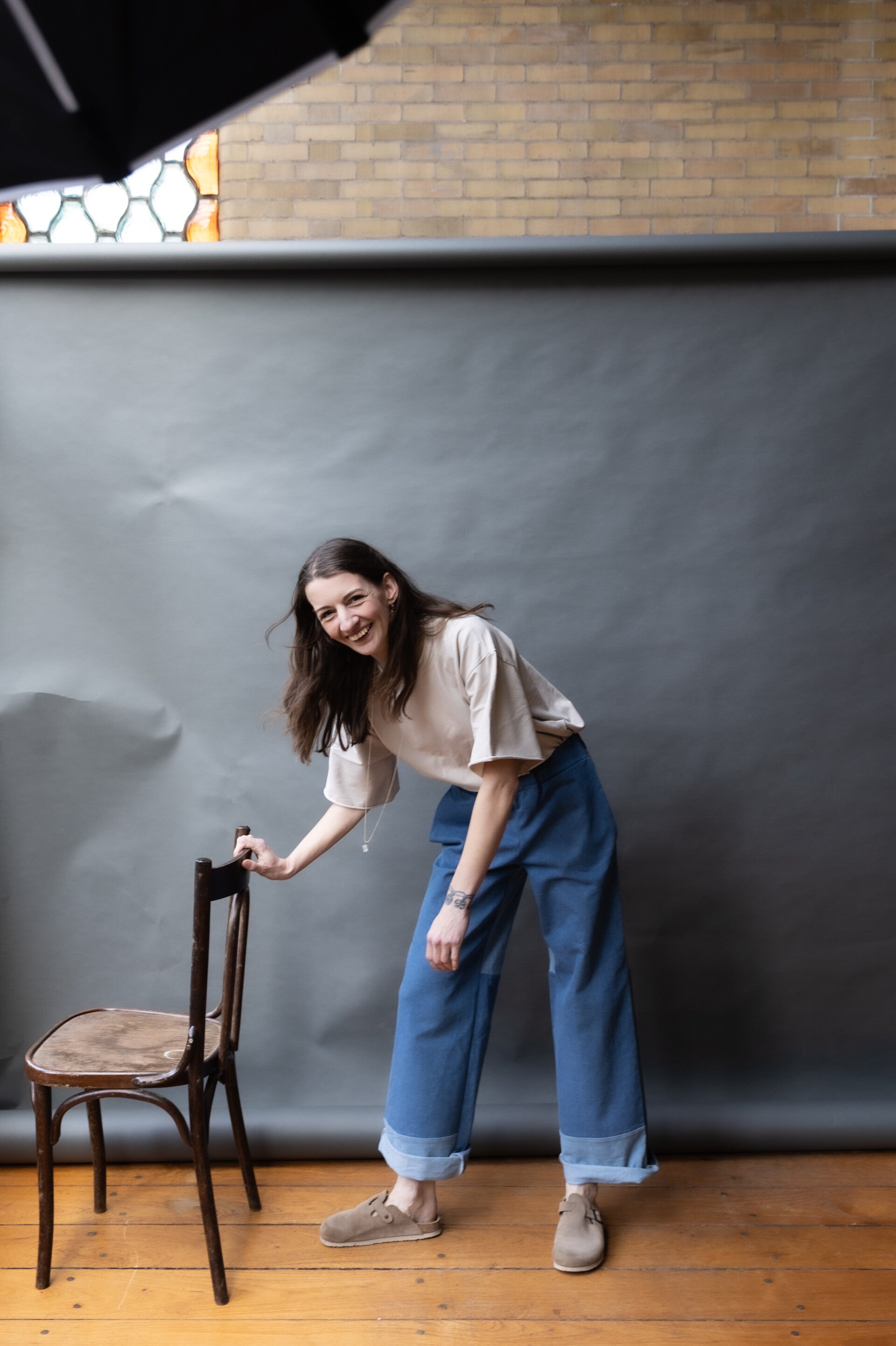 The model in the photo is 186cm tall, and these jeans are custom-made to her length. She's wearing the colors light and medium denim and is wearing size 36/38.