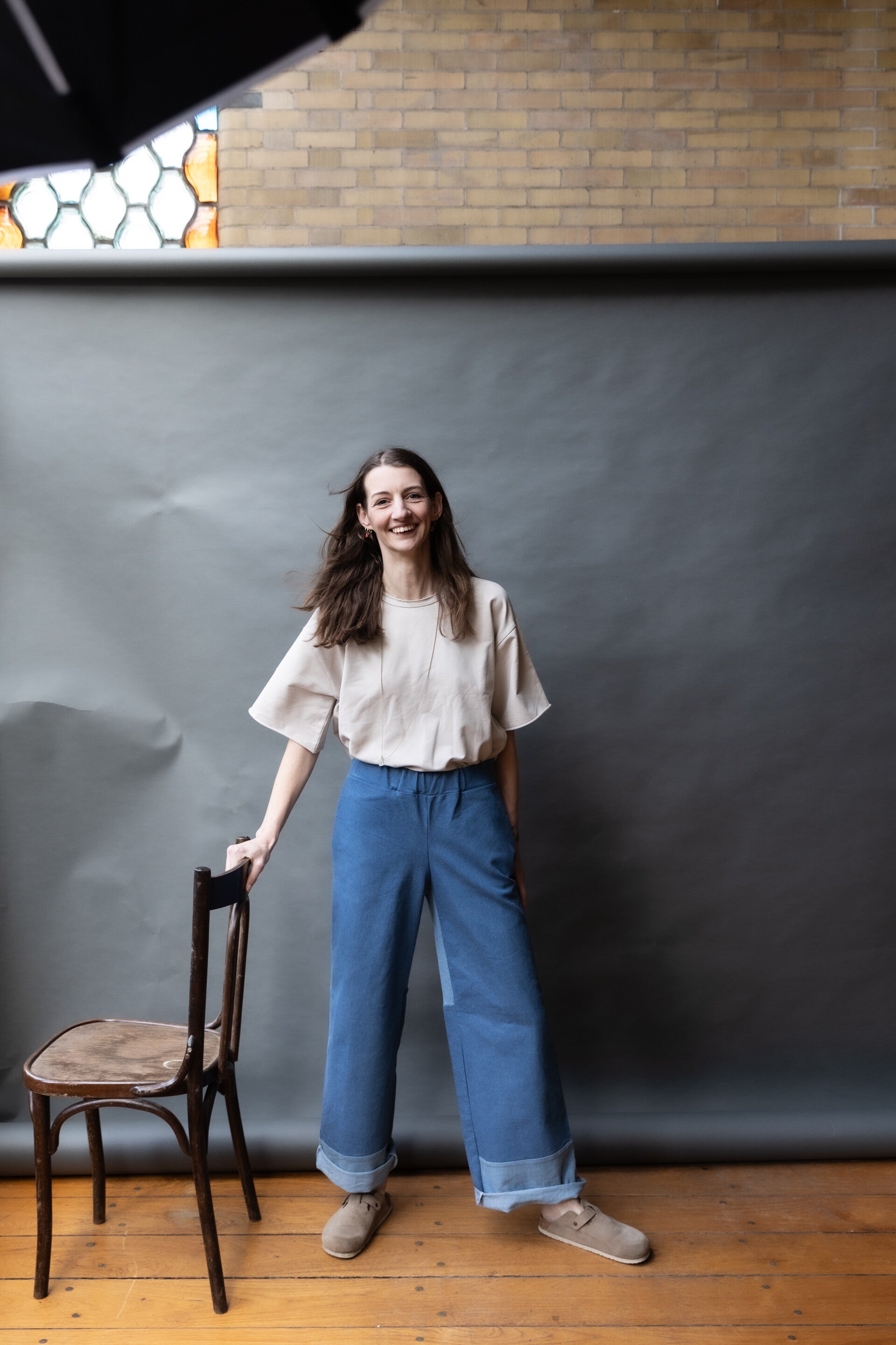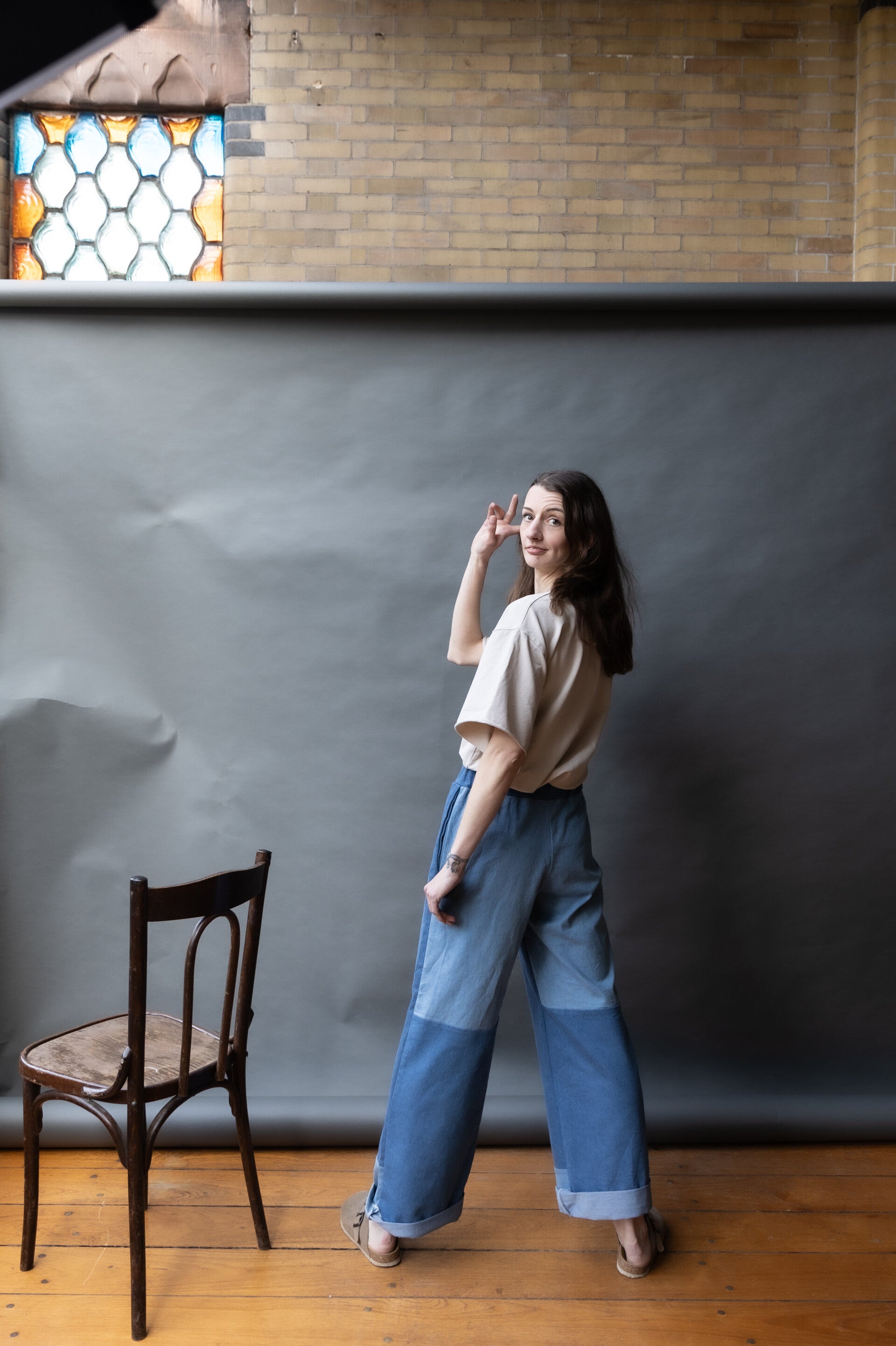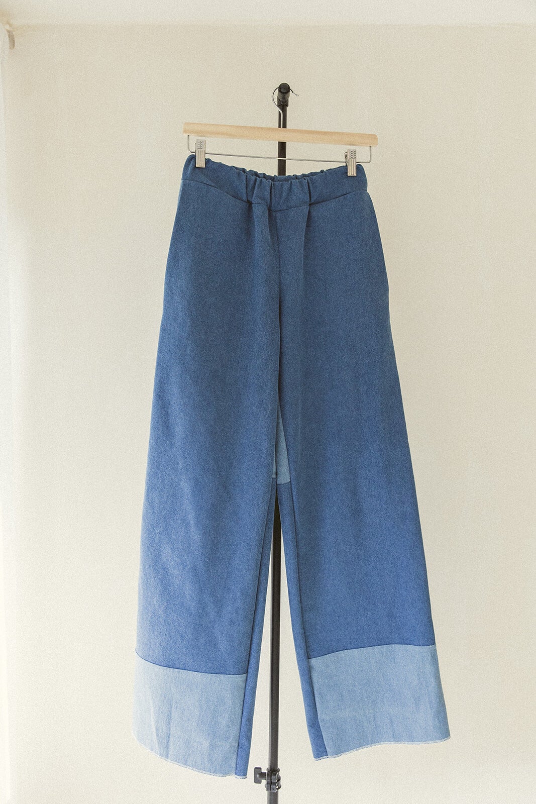 The Kenshō jeans features a slightly dropped crotch, side pockets, an elastic waistband, and rolled-up cuffs. It offers the comfort of sweatpants but the appearance of jeans!