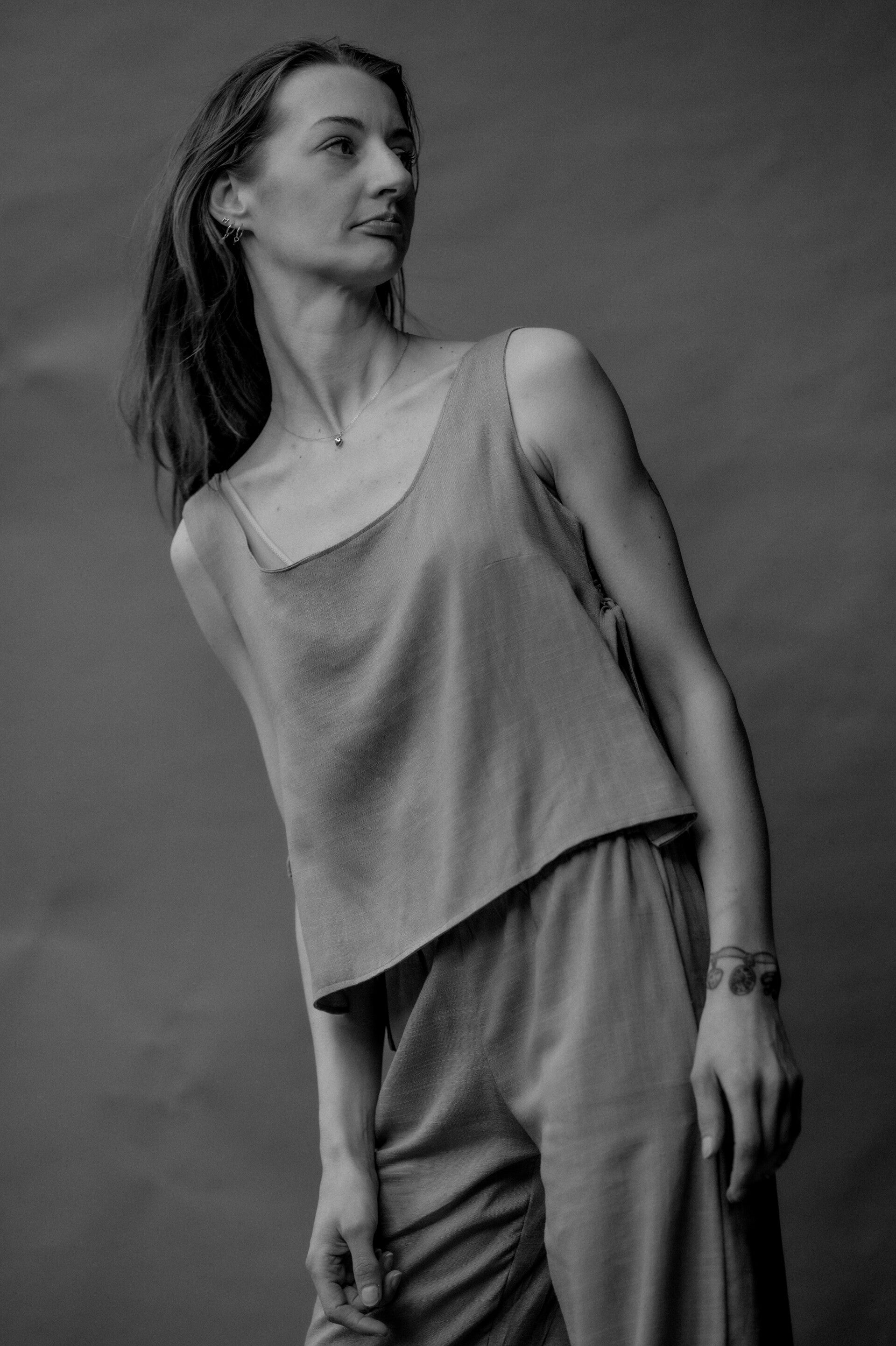The top can be tied loosely and airily with a bow and coupe seams on both sides.