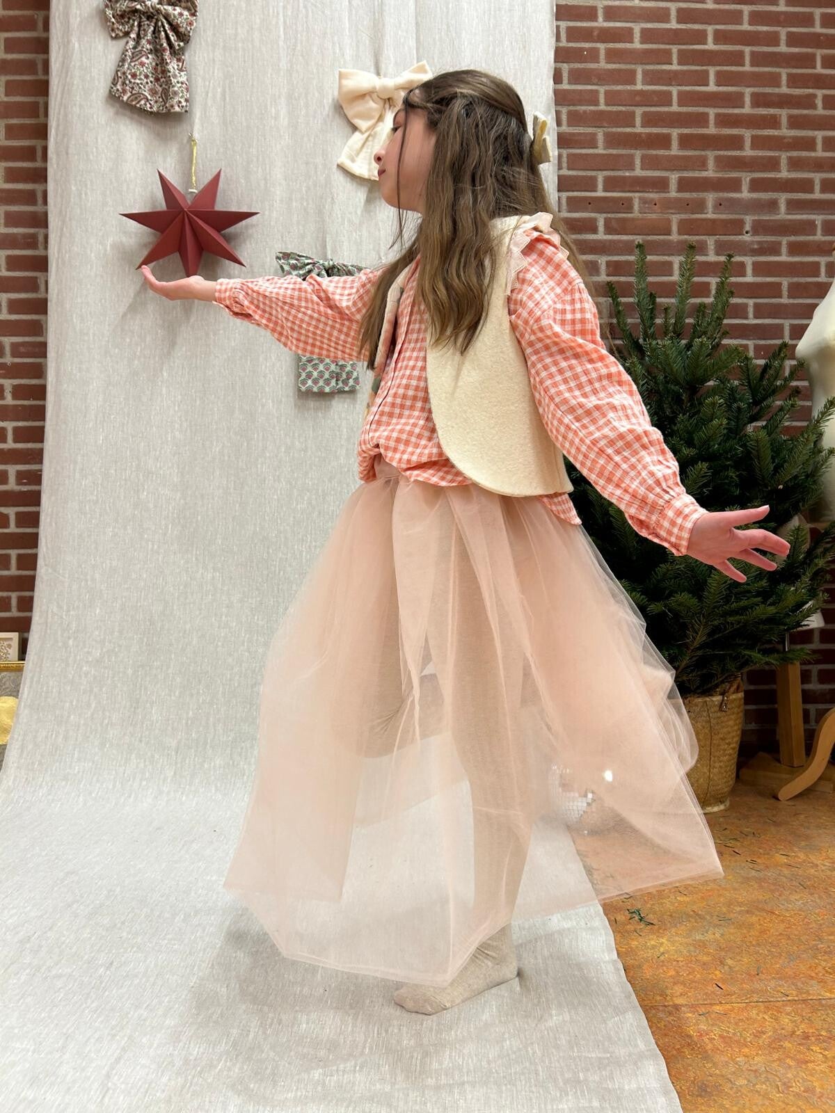 Voor de kleintjes hebben we een extra speciaal ontwerp: de kinderversie is afgewerkt met een schattige broderie ruffel, die net dat beetje extra magie toevoegt. Een subtiele knipoog naar vroeger, gecombineerd met een frisse, eigentijdse uitstraling.