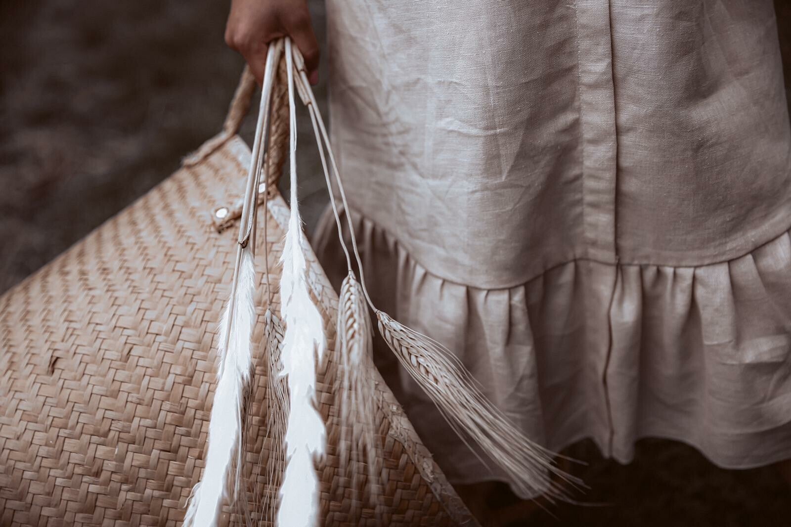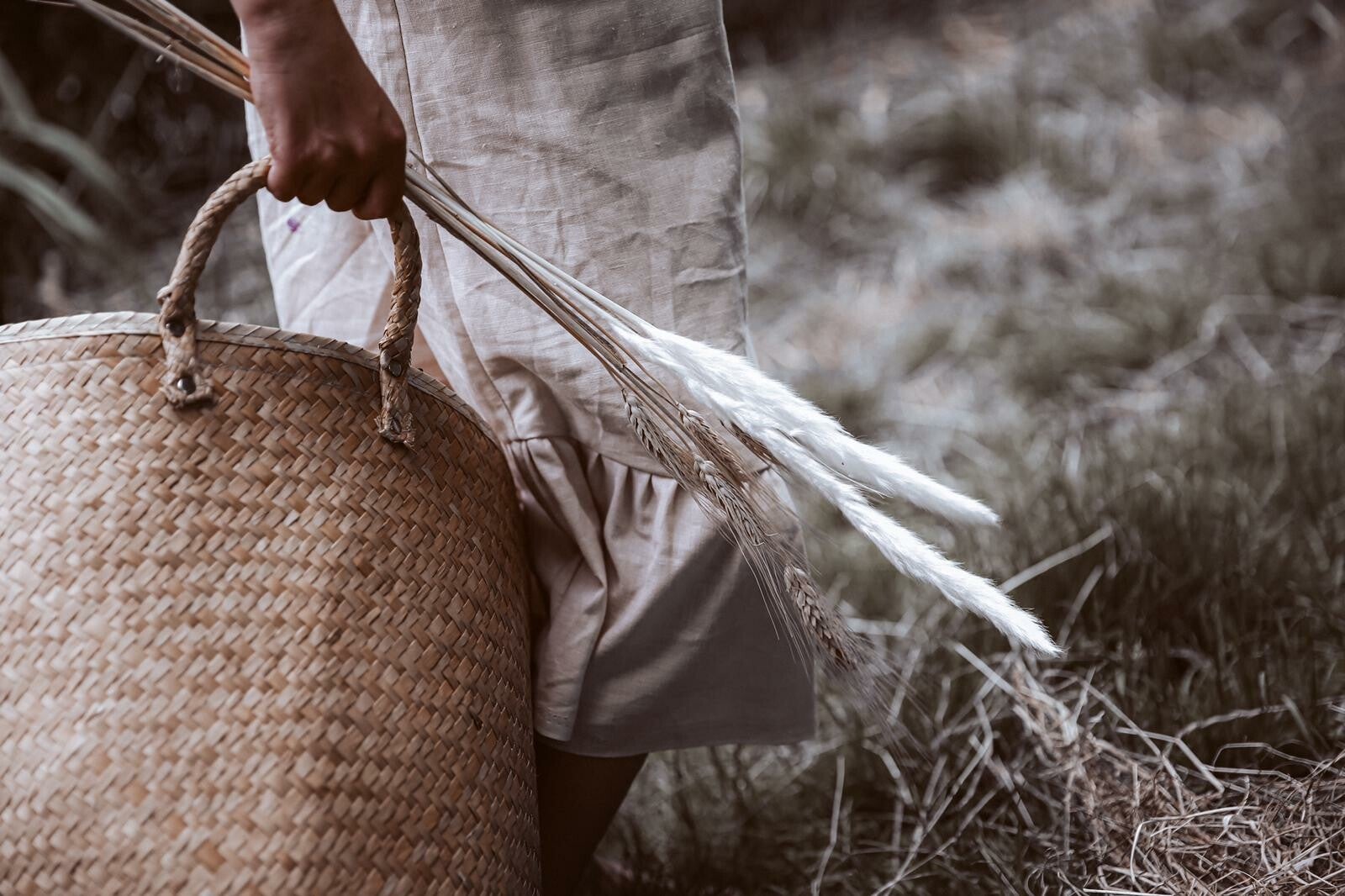 Deze jurk is gemaakt van 100% linnen en bedrukt met paarse bloemblaadjes.De kraag is geborduurd met halve maantjes. Deze jurk is een oversized fit.