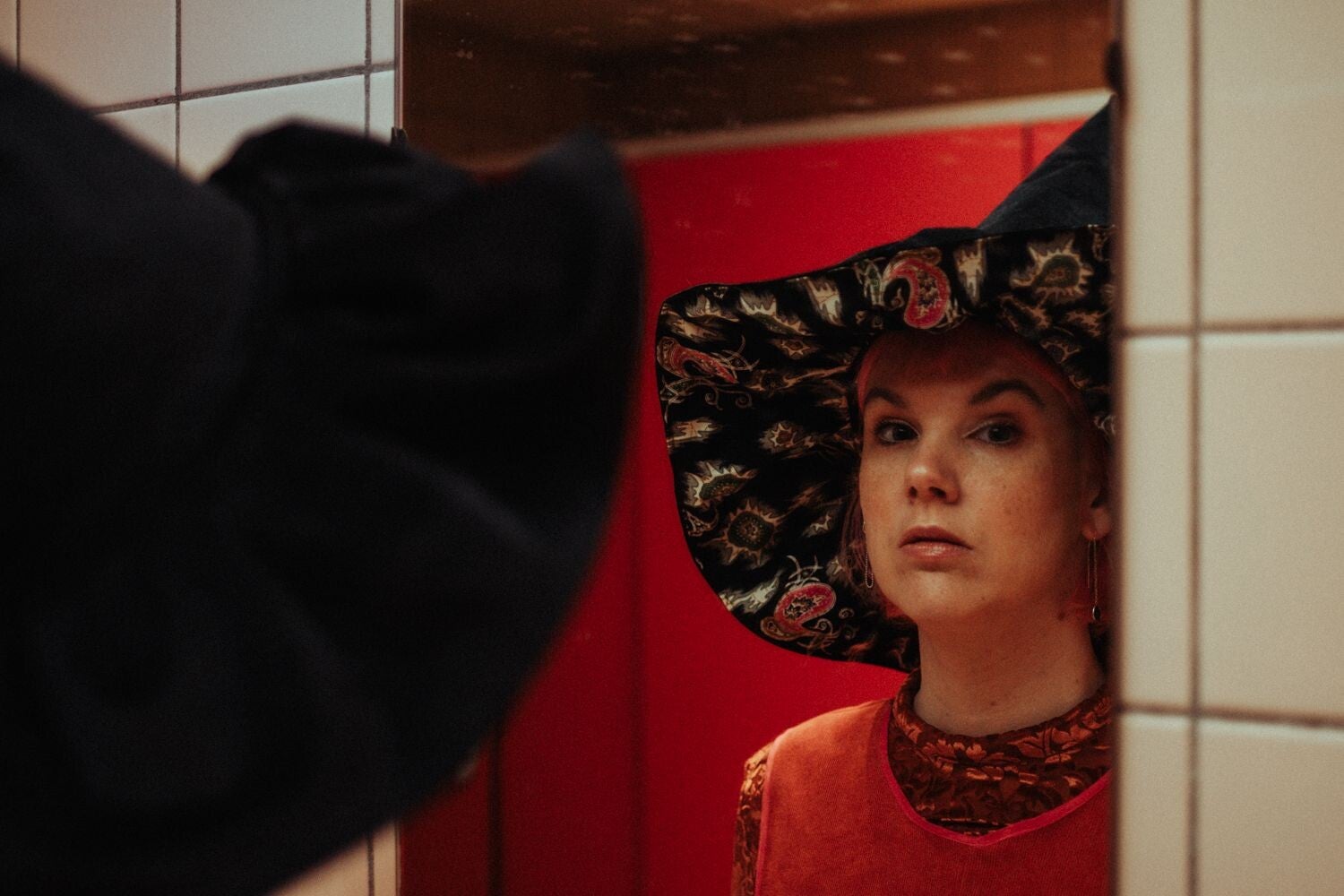 Een diep Zwarte heksenhoed gemaakt van 100% katoen velours en gevoerd met een deadstock katoen van het merk wolfware amsterdam