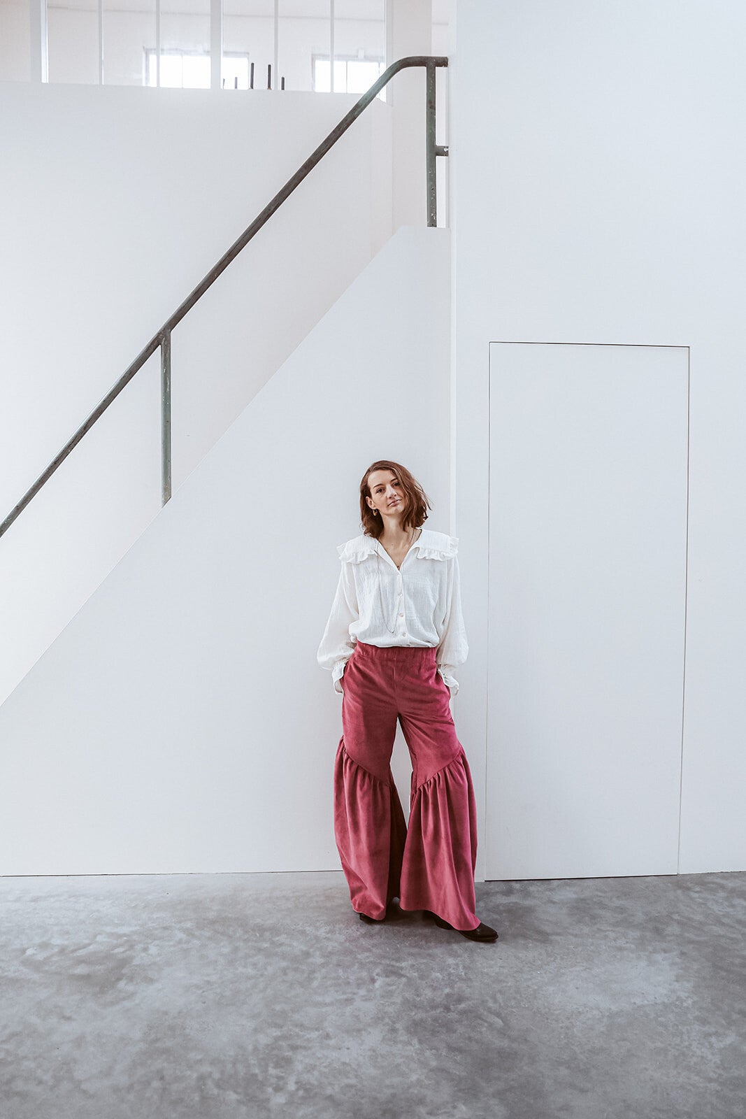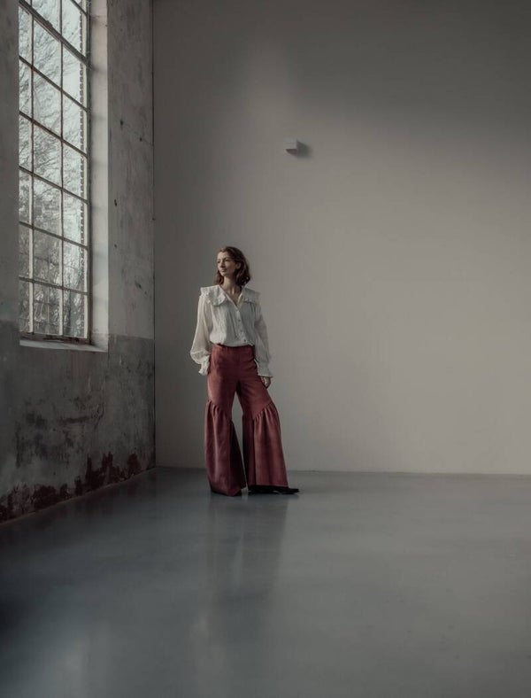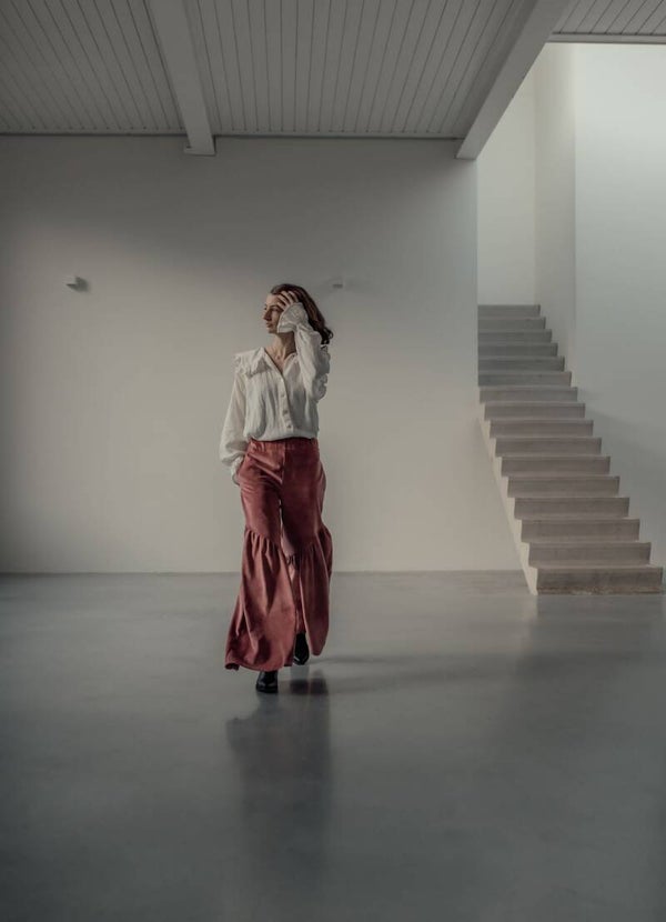 Oversized pink dream met steekzakken, elastiek in de taile band en vanaf de knie een schuine naad, extra geplooit waardoor hij lekker groot over de schoen valt